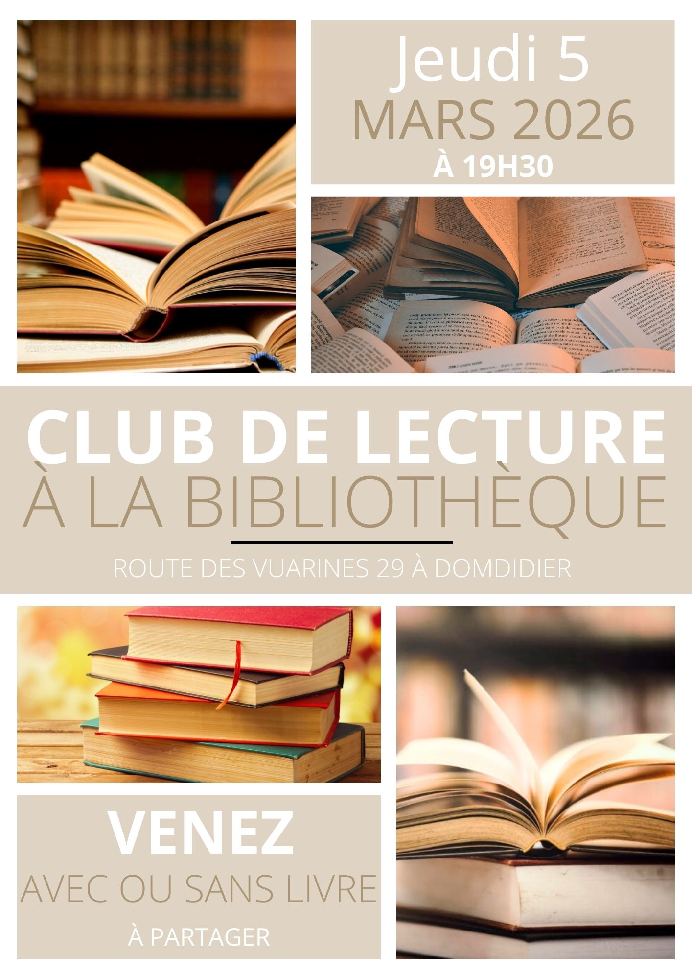 Venez avec ou sans livre à partager